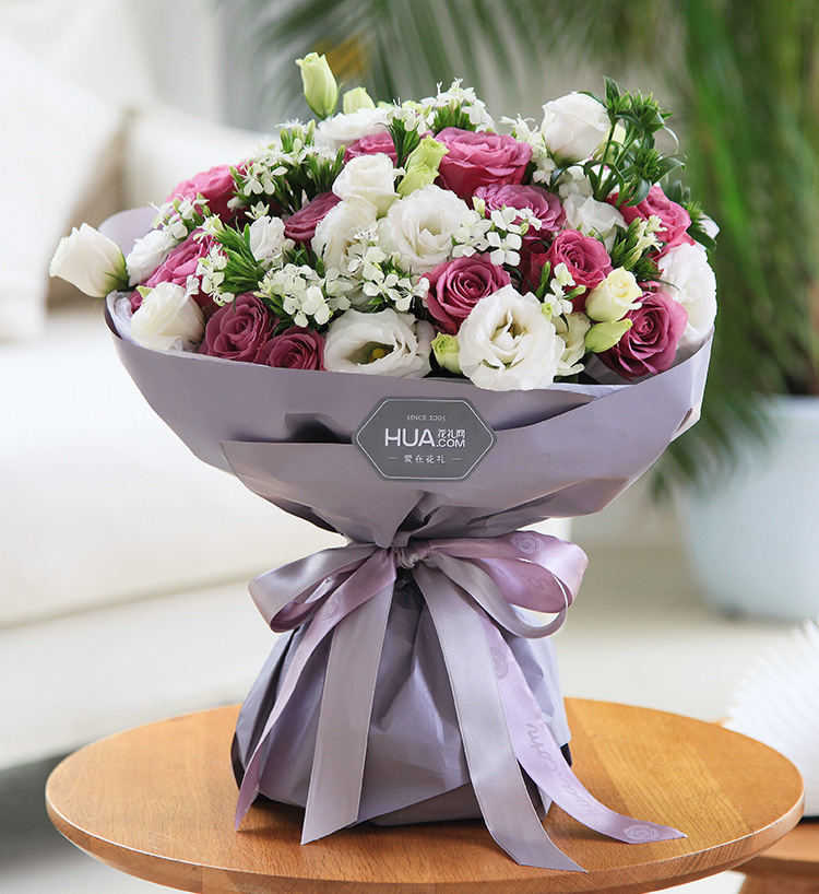 种成熟稳重的气质,搭配白色桔梗,颜色简洁素雅,还可以点缀一些其他的小花材,比较适合送男生。