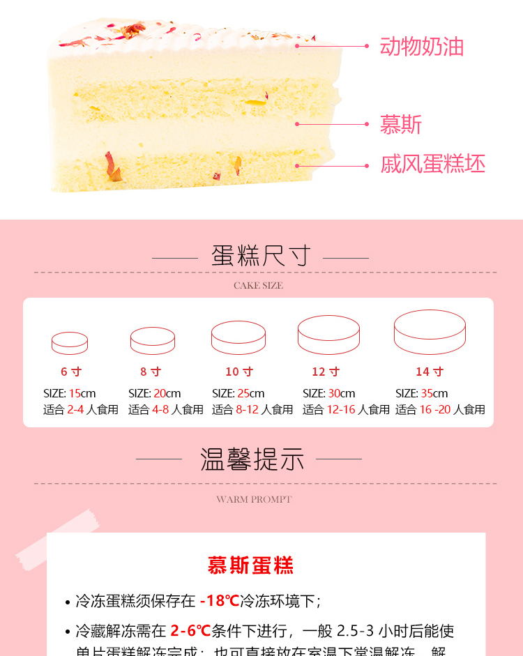 鲜花蛋糕都是配送当日新鲜材料制作而成,确保新鲜度,敬请放心订购!