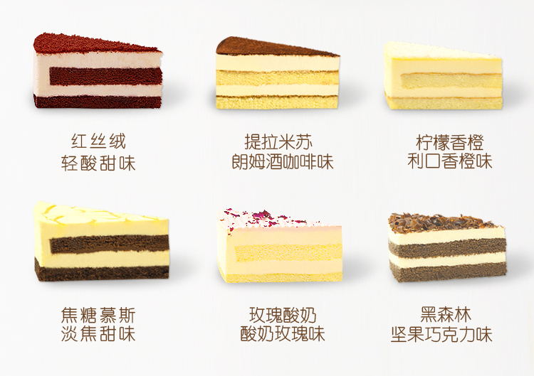 立减8元玫瑰酸奶,柠檬香橙,红丝绒,抹茶,黑森林,重芝士,提拉米苏,芒果、蓝莓慕斯,动物奶油,椰蓉,蛋糕胚,柠檬夹层,鸡蛋、稀奶油、牛奶、大豆油、白砂糖