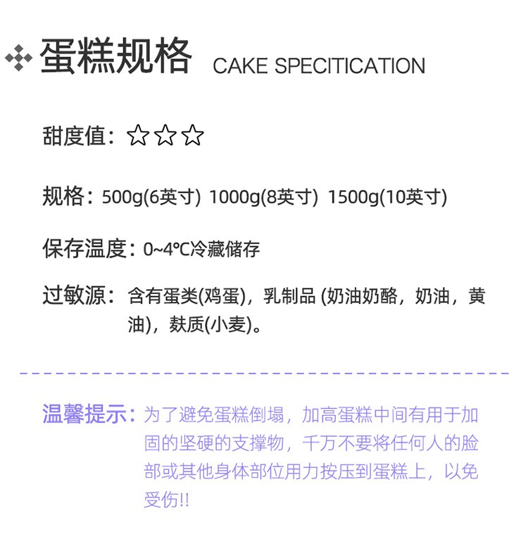 鲜花蛋糕都是配送当日新鲜材料制作而成,确保新鲜度,敬请放心订购!
