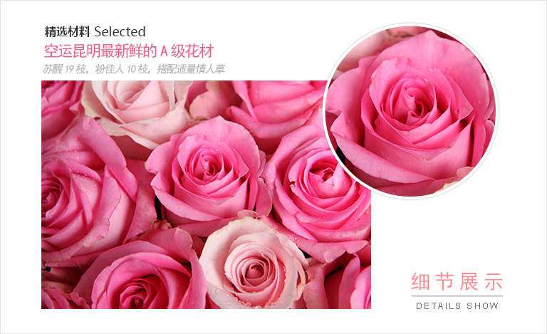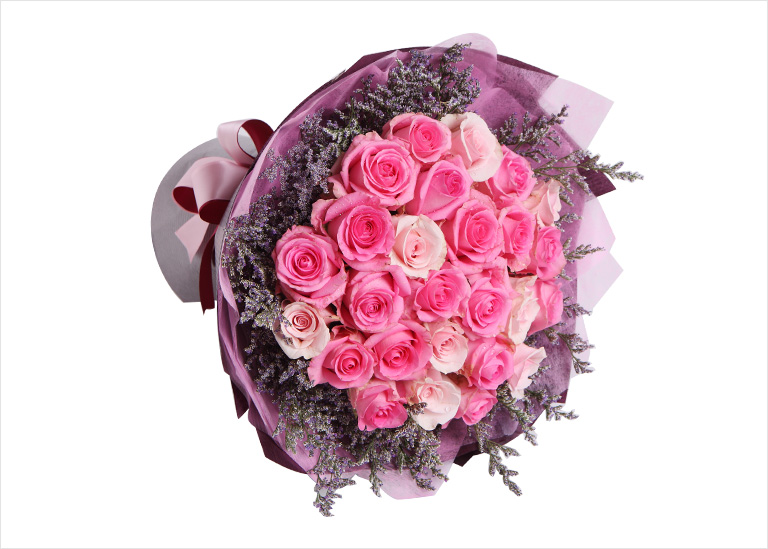 上海419论坛精品玫瑰系列:粉佳人粉玫瑰10枝,水粉色苏醒玫瑰19枝,搭配适量情人草