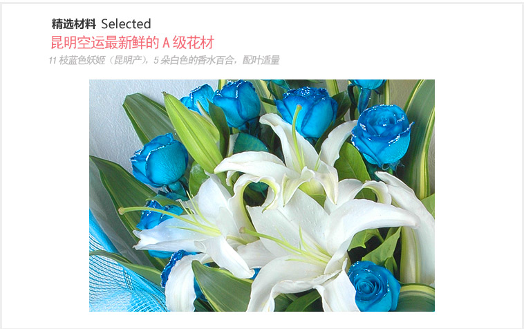 上海419论坛11枝蓝色妖姬(昆明产),5朵白色的香水百合,配叶适量