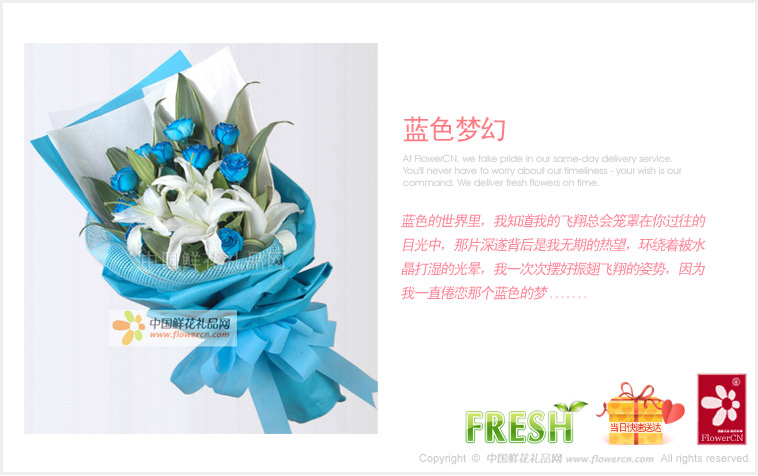 鲜花蛋糕都是配送当日新鲜材料制作而成,确保新鲜度,敬请放心订购!