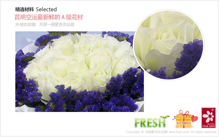 鲜花蛋糕都是配送当日新鲜材料制作而成,确保新鲜度,敬请放心订购!