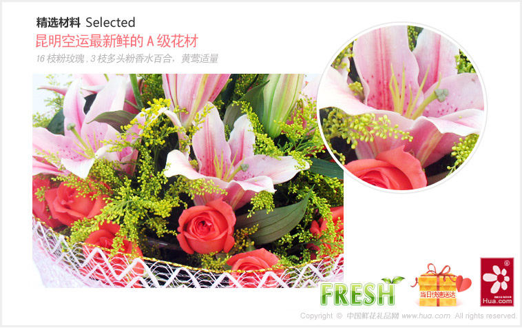 鲜花蛋糕都是配送当日新鲜材料制作而成,确保新鲜度,敬请放心订购!