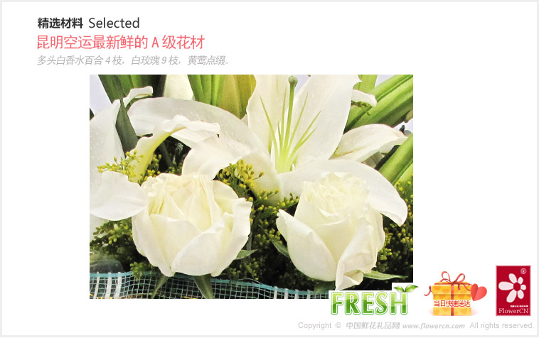 鲜花蛋糕都是配送当日新鲜材料制作而成,确保新鲜度,敬请放心订购!