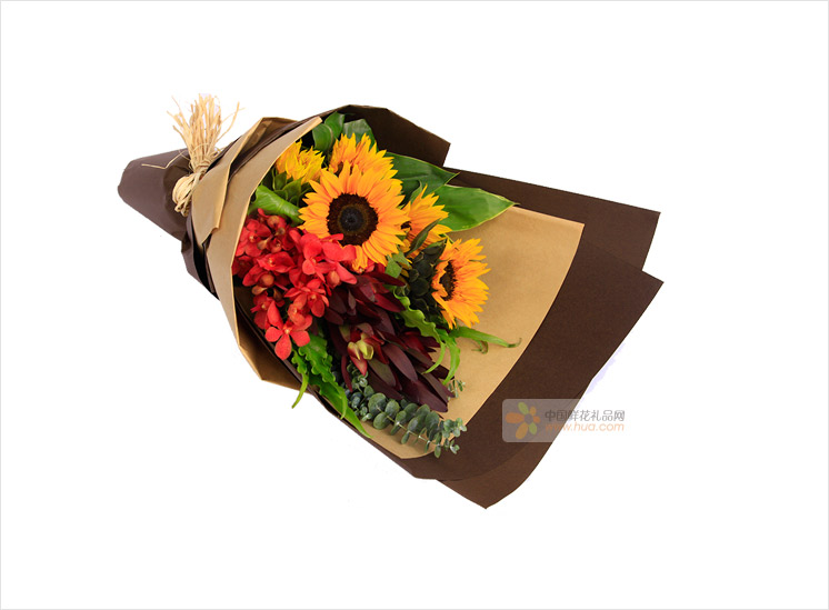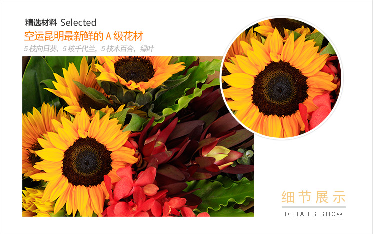 上海419论坛5枝向日葵,5枝千代兰,5枝木百合,绿叶