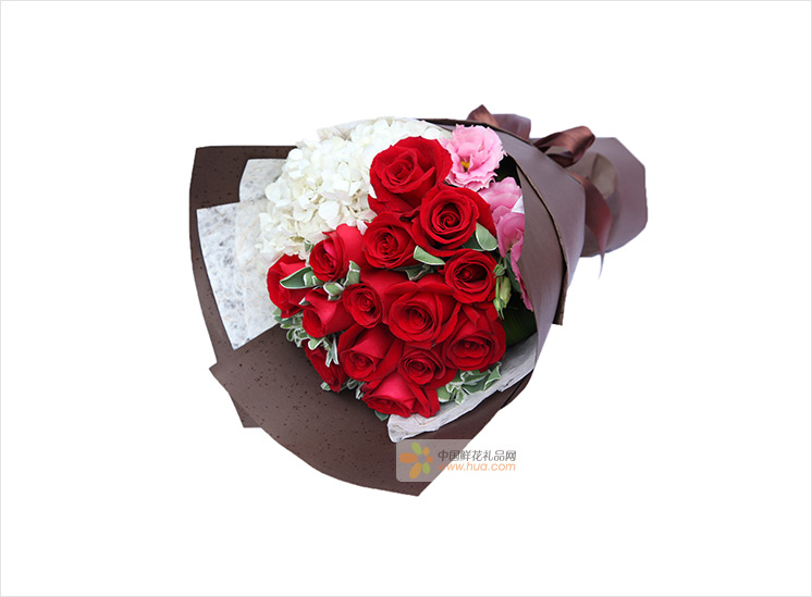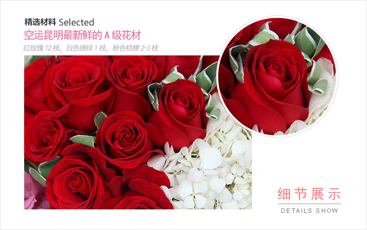 上海419论坛12枝红玫瑰,白色绣球1枝,粉色桔梗2-3枝