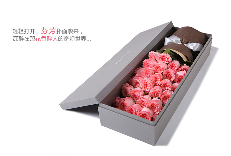 高档礼盒装鲜花:33枝戴安娜玫瑰,少量绿叶