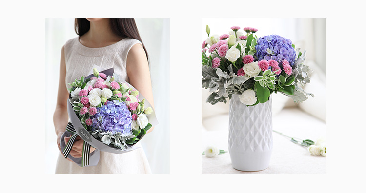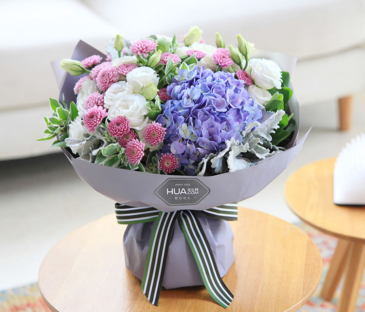 [双鱼座鲜花定制款] 蓝色绣球1枝,紫色小雏菊4枝